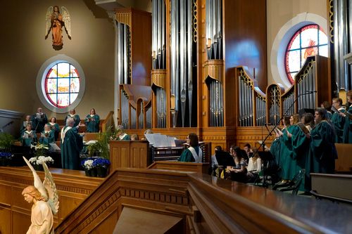Our organ is a Rodgers combination digital and pipe organ. In total, it is 70 ranks with 10 ranks being true pipe and 60 ranks being digitally sampled. It has four manuals and a full pedal board. We chose a combination organ because the humidity of our area is very hard in keeping a constant temperature. This causes the pipe to go out of tune unless the room has been brought to the desired temperature. The digital sounds of course are not affected by this. Therefore, to fill the room and give us the greatest sense of variety we chose, after much discussion with the Rodgers Company, to go with this combination.